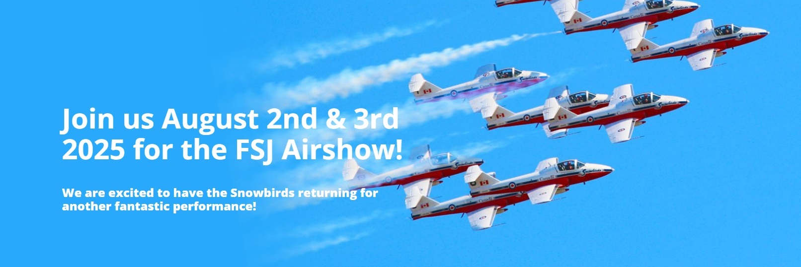 Join us at the Fort St John International Air Show August 2nd and 3rd, 2025 for two days of dazzling air displays and family fun at the North Peace Regional Airport.